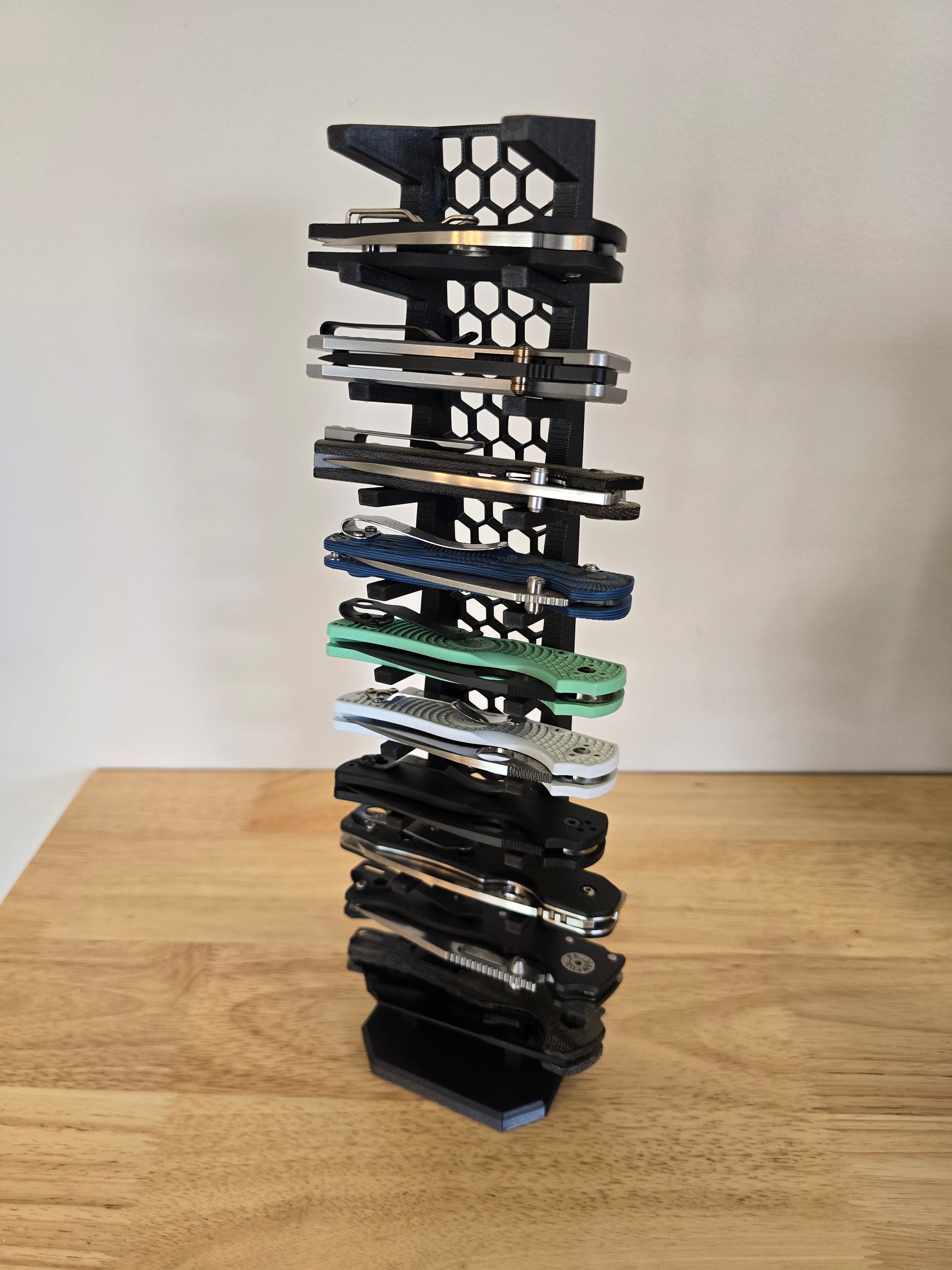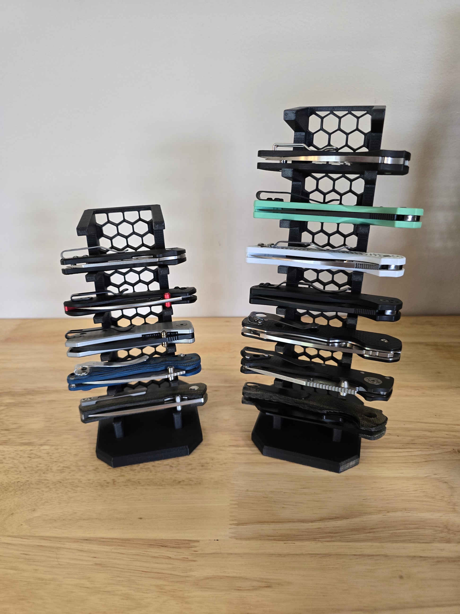 A new, more aesthetically pleasing version of my knife display towers. Featuring a honeycomb style frame. A perfect gift for the knife enthusiast.